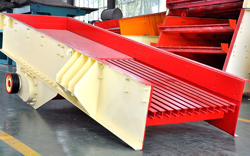 重型給料機(jī)主要由槽體、振動(dòng)電機(jī)、支撐彈簧等部件組成。GF系列給料機(jī)采用振動(dòng)電機(jī)作為激振源驅(qū)動(dòng)設(shè)備振動(dòng),迫使物料從給料端緩慢地推至排料端。與此同時(shí),對(duì)物料進(jìn)行篩分,使其粒度更加均勻。通常,在給料機(jī)的排料端裝備有一個(gè)棒條柵篩,通過它,分離出粒度小于各棒條條間距的物料,并將較大粒度的物料輸送到破碎機(jī)內(nèi)。通過改變振動(dòng)電機(jī)的激振力對(duì)給料機(jī)的給料能力進(jìn)行調(diào)節(jié),可以利用安裝在給料機(jī)下部的篩層對(duì)物料進(jìn)行進(jìn)一步的篩分。
